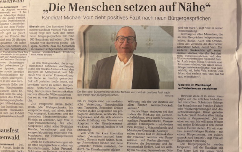 PRESSEMITTEILUNG: Michael Volz — Birstein GRÖSSER Denken und Handeln Weiterlesen »