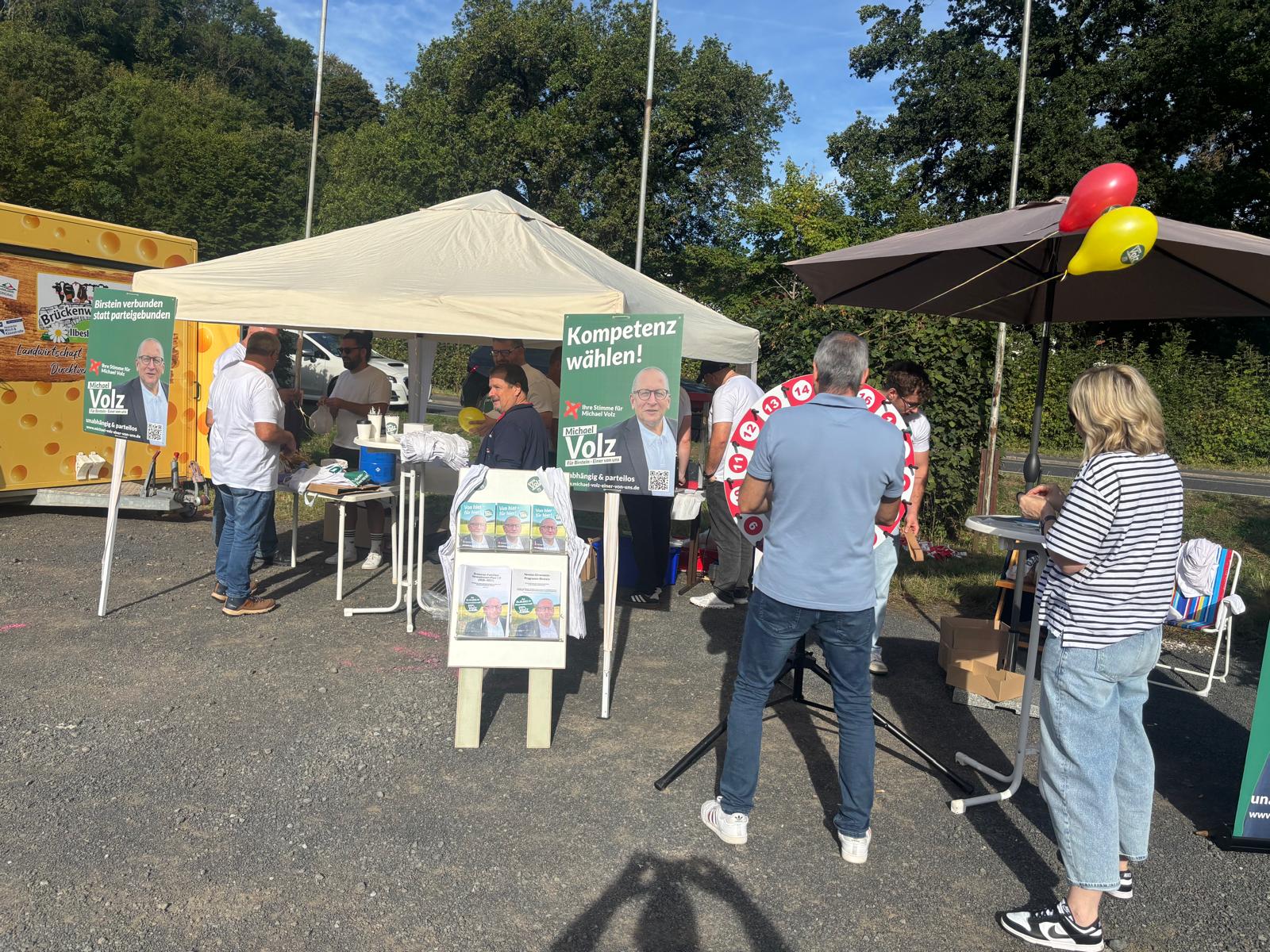 – Strah­len­der Son­nen­schein, gute Lau­ne und vie­le inter­es­sier­te Bür­ge­rin­nen und Bür­ger: Die Bir­stei­ner-Markt-Gesprä­che am Info-Stand von Bür­ger­meis­ter­kan­di­dat Micha­el Volz waren für den unab­hän­gi­gen Bewer­ber ein vol­ler Erfolg. „Es war ein rund­um gelun­ge­ner Sonn­tag. Mei­ne 24 Unter­stüt­ze­rin­nen und Unter­stüt­zer an die­sem Tag sowie ich selbst kamen mit sehr vie­len Men­schen ins Gespräch – mit Jung und Alt, mit Markt­be­su­chern, mit Inter­es­sier­ten nach dem Kirch­gang, mit Bür­ge­rin­nen und Bür­gern sowie mit den Kerb­bu­schen, dem wil­den Weib, die den Markt auch zur Bir­stei­ner Kerb machen.